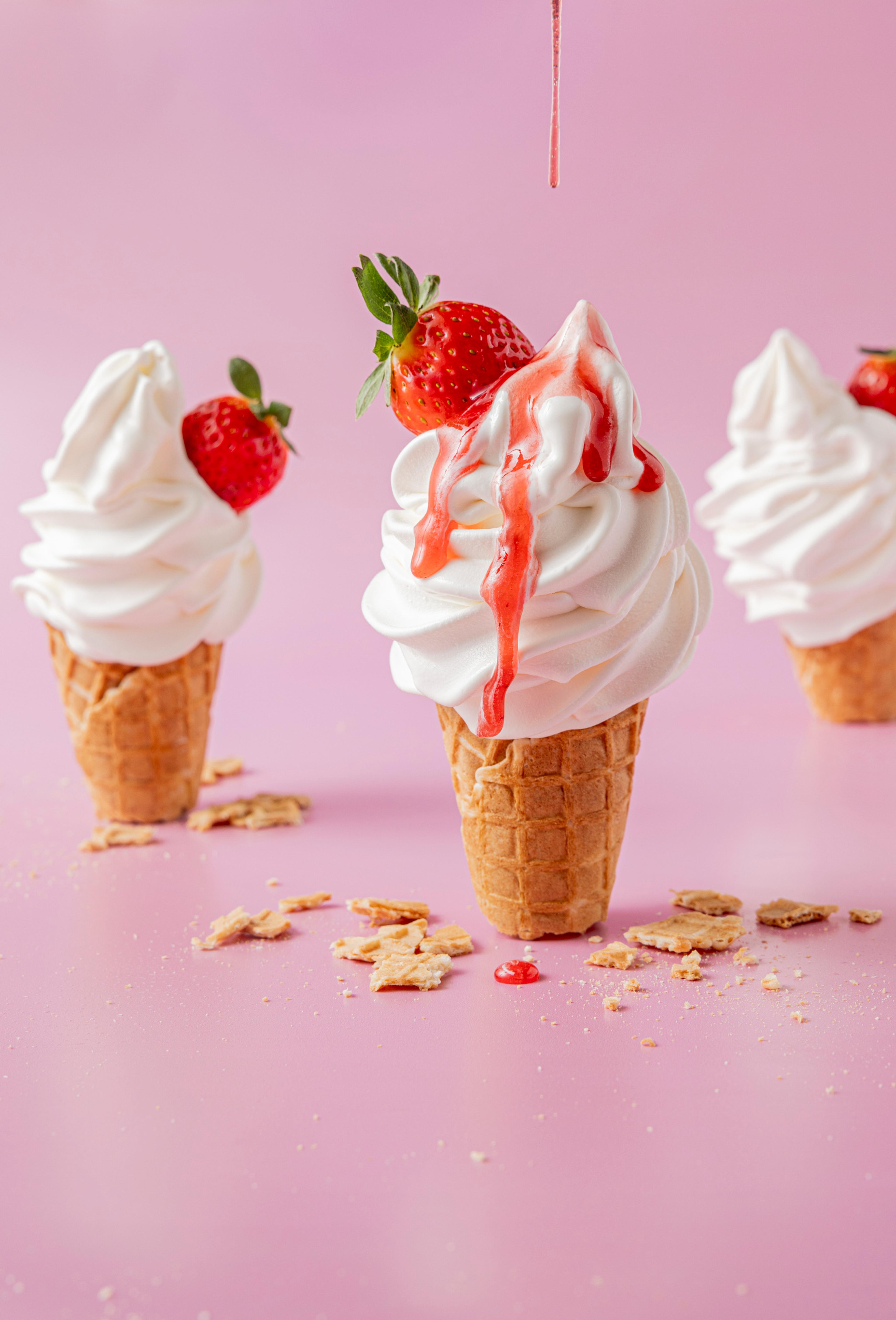 Vann, kremfløte (18%), sukker, skummetmelkpulver, glukose, emulgator (E471), stabilisator (E466, E410, E412, E407, E401), aroma, fargestoff (E160b(ii)).
