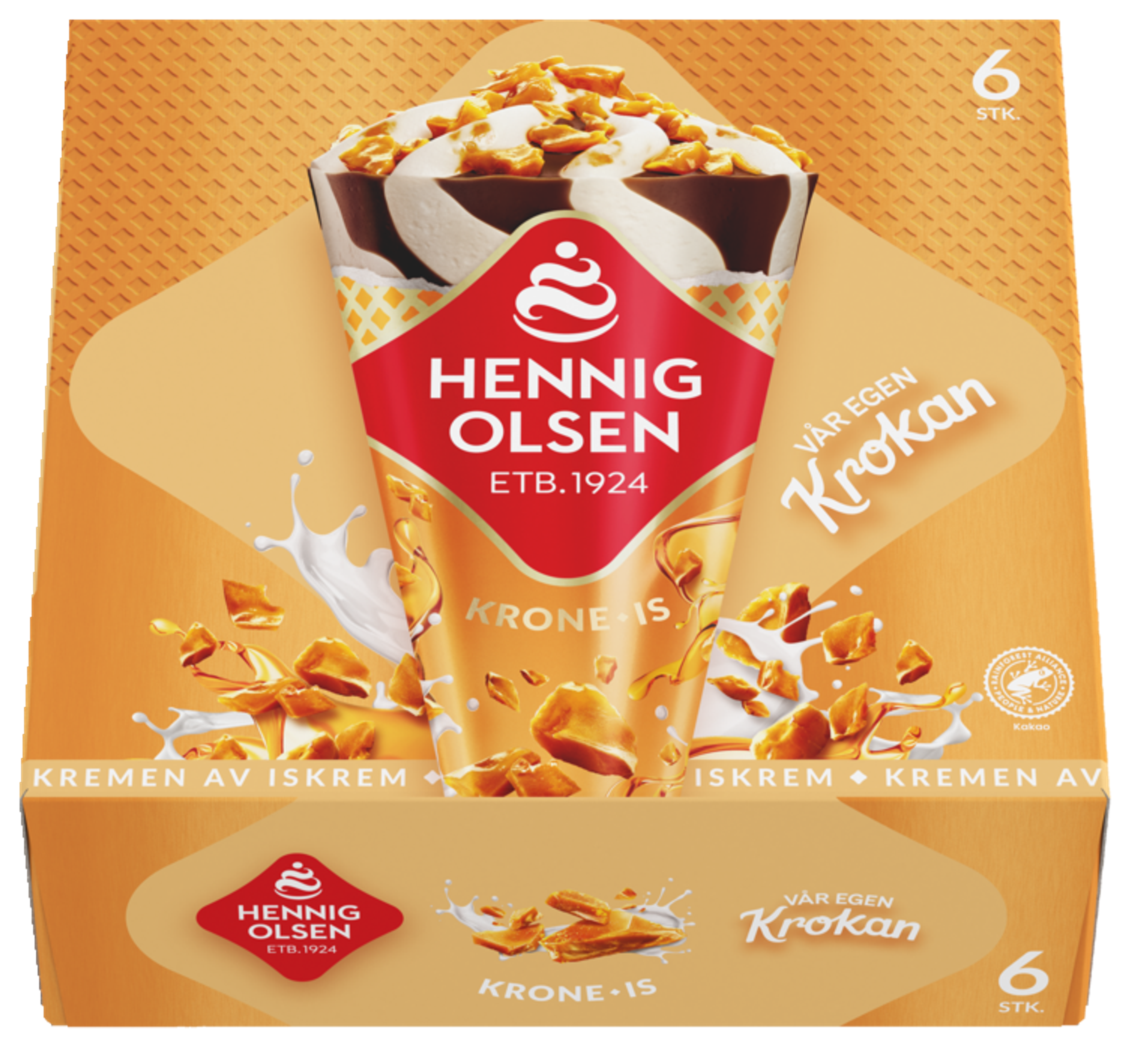 Alle elsker Krone-is fra Hennig-Olsen Is, og nå kommer også iskremen med vår egen krokan! Prøv denne 6-pakningen, perfekt å ta med hjem!